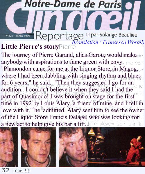 Louis Alary successfully did the opening act for the launching of Garou's first CD, Seul, in november 2000...